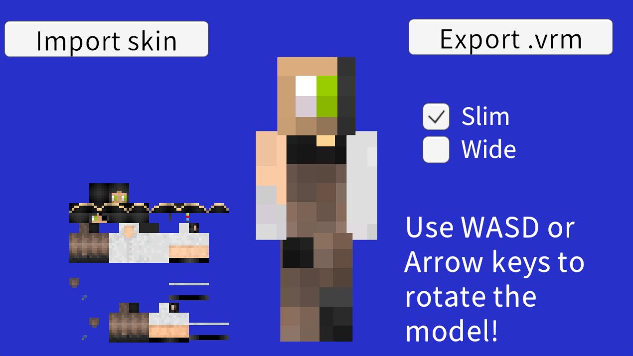 with this app you will be able To use your minecraft skin as a vtuber model compatible with software like Vseeface or other VRM compatible apps